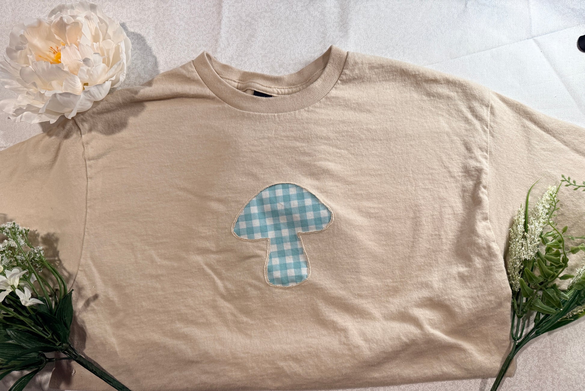 Blue Gingham Mushroom Embroidered Tee – Made to Order